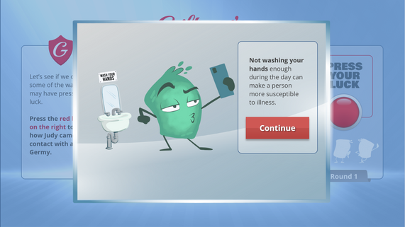 Designing backward from the learning objectives I used Freeform to create an outline of how the learning would flow to meet the learning objectives. I captured the user's attention using a Press Your Luck theme that I created in Photoshop for the training. The training was then created in Articulate Storyline 360 where I used click to reveal interactions, a slider, and animations to engage the learners. I ended up catching a cold while creating this project and could empathize with employees who would be taking the hypothetical training. I enjoyed creating the Press Your Luck board and animations. My favorite interaction is the slider which shows the most missed spots when washing.